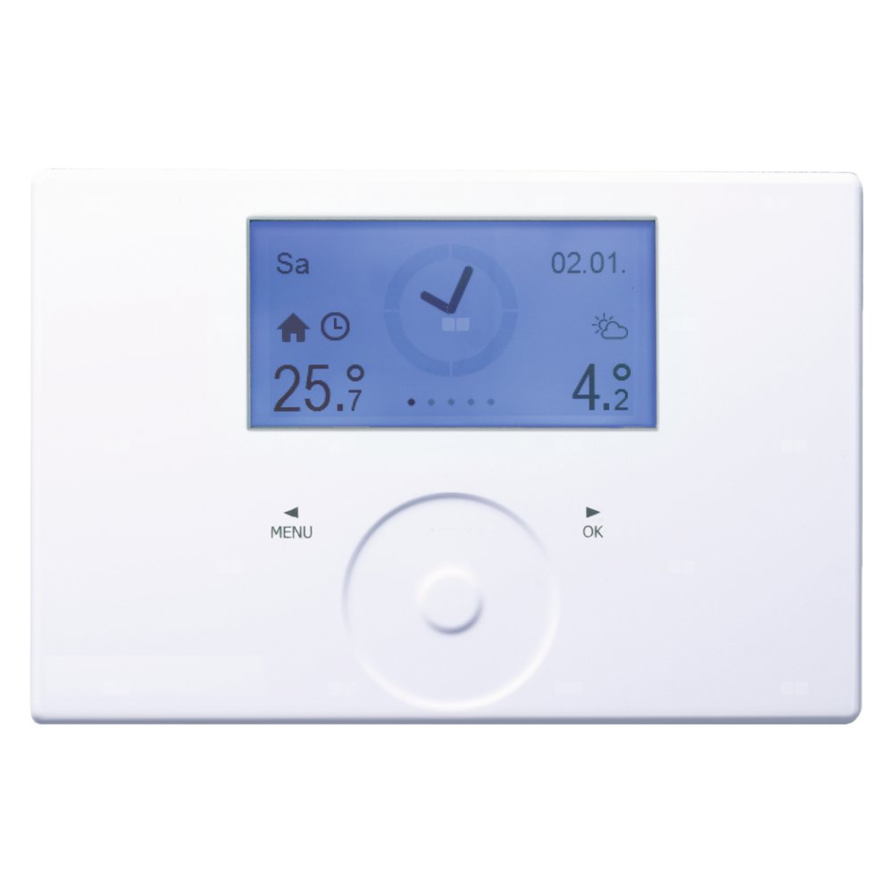 Termostat pokojowy z czujnikiem wilgotności. Podświetlany wyświetlacz graficzny, funkcja jednorazowego ładowania zasobnika cwu, oszczędność energii dzięki funkcji Eco. Moduł do współpracy z nowym WPM.