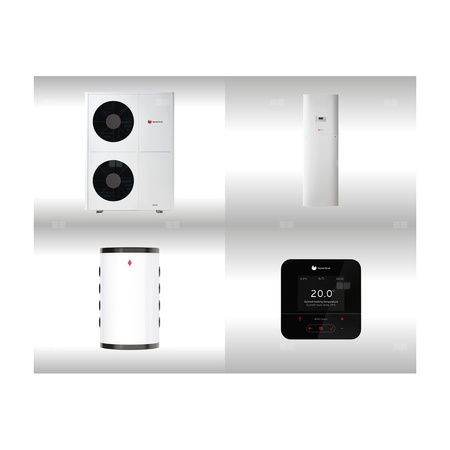 Pompa ciepła powietrzna powietrze-woda monoblok SAUNIER DUVAL GeniaAir HA 10-6 O 9.2 kW 400 V + Centrala grzewcza FEW 200/6 + Moduł komunikacji internetowej SR 940f + Zasobnik buforowy WN RW 50 + Regulator SRC 720
