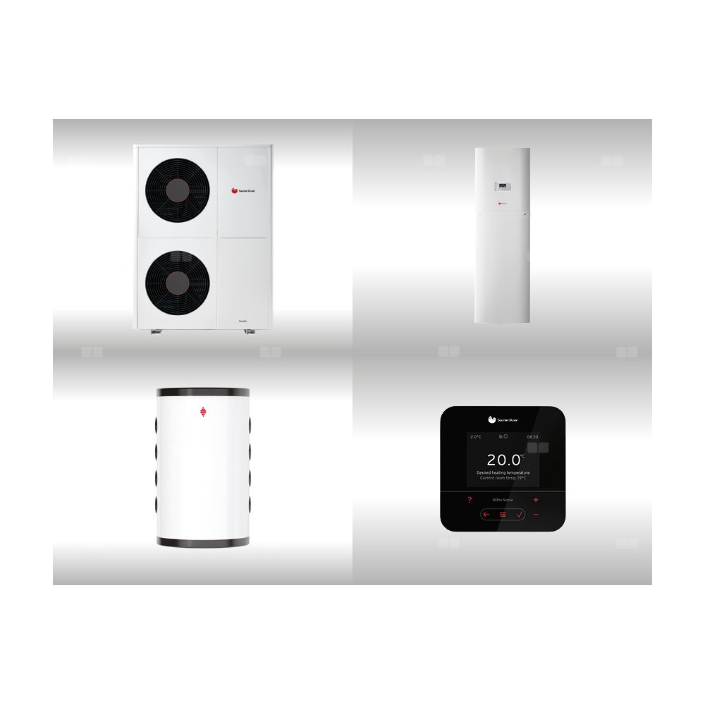 Pompa ciepła powietrzna powietrze-woda monoblok SAUNIER DUVAL GeniaAir HA 12-6 O 12.2 kW 400 V + Centrala grzewcza FEW 200/6 + Moduł komunikacji internetowej SR 940f + Zasobnik buforowy WN RW 50 + Regulator SRC 720