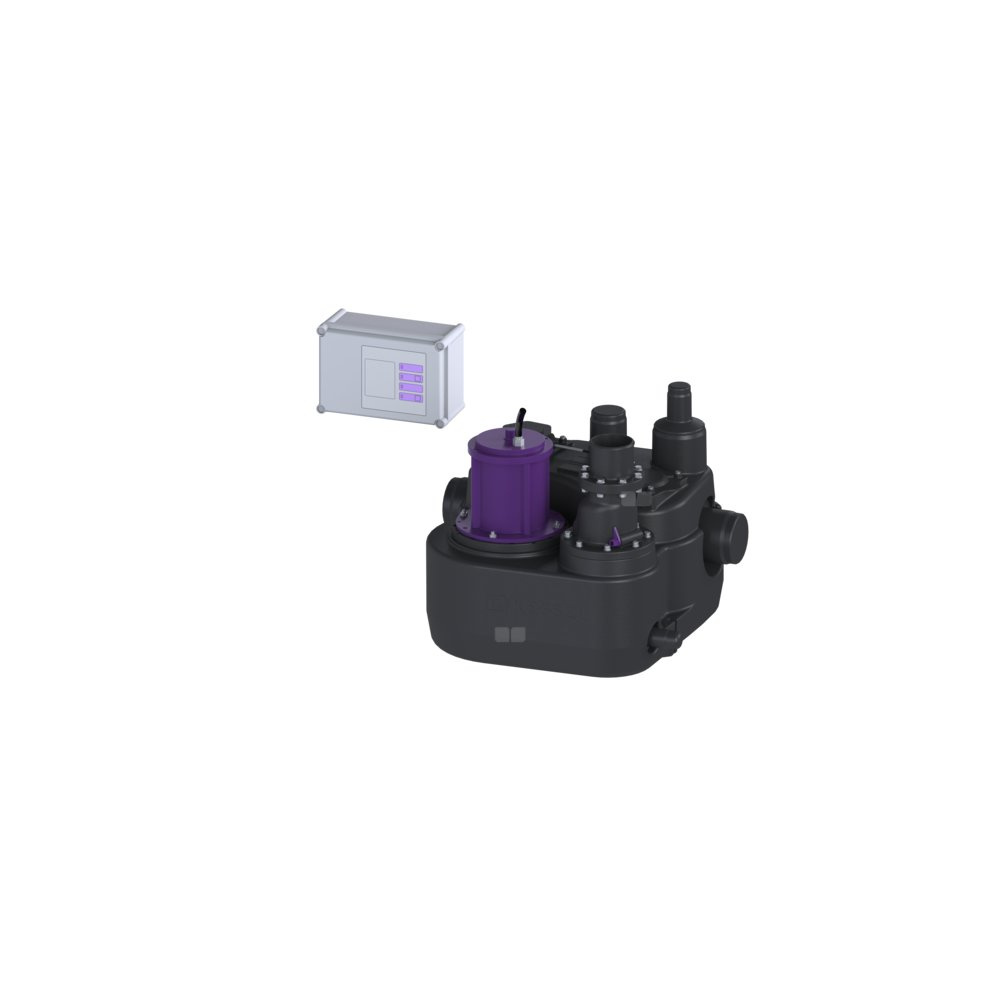 Przepompownia do ścieków zawierających fekalia i bez fekaliów jest wyposażona w jedną lub dwie pompy zatapialne oraz zawór zwrotny.