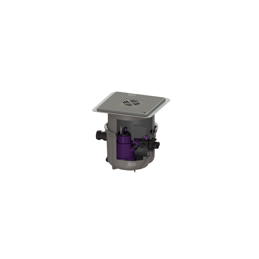 Gotowa do przyłączenia przepompownia do użytku w ograniczonym zakresie jest przystosowana do usuwania ścieków z pojedynczych miejsc odpływu. Pompę zatapialną z przełącznikiem pływakowym można łatwo wyjąć przy pomocy zamknięć jednoręcznych. Zbiornik wykonany z tworzywa sztucznego (PP) posiada otwartą komorę pompy i jest odporny na działanie agresywnych ścieków. Urządzenie do zabudowy w płycie podłogowej jest wstępnie zmontowane do montażu końcowego w miejscu instalacji.