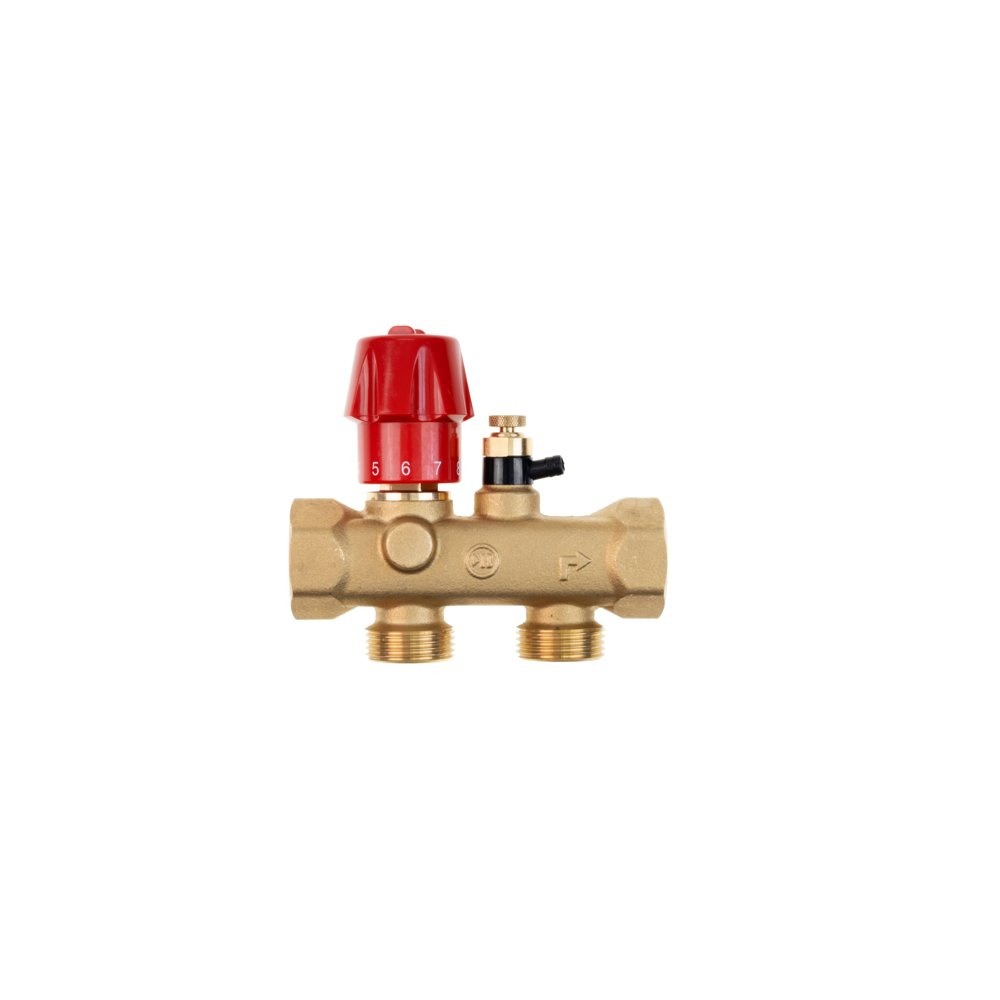 QIK Zespół do podłączenia zmiękczacza służy do podłączenia zmiękczacza, to kompaktowy mosiężny moduł przyłączeniowy przeznaczony do szybkiego montażu i demontażu zmiękczacza wody bez konieczności opróżniania instalacji z medium. Konstrukcja modułu umożliwia ciągły przepływ wody w instalacji zarówno w trybie pracy ze zmiękczaczem, jak i w trybie obejścia (bypass). Zintegrowany odpowietrznik ułatwia odpowietrzanie układu, a wbudowany zawór zwrotny zabezpiecza przed przepływem zwrotnym w kierunku zmiękczacza.