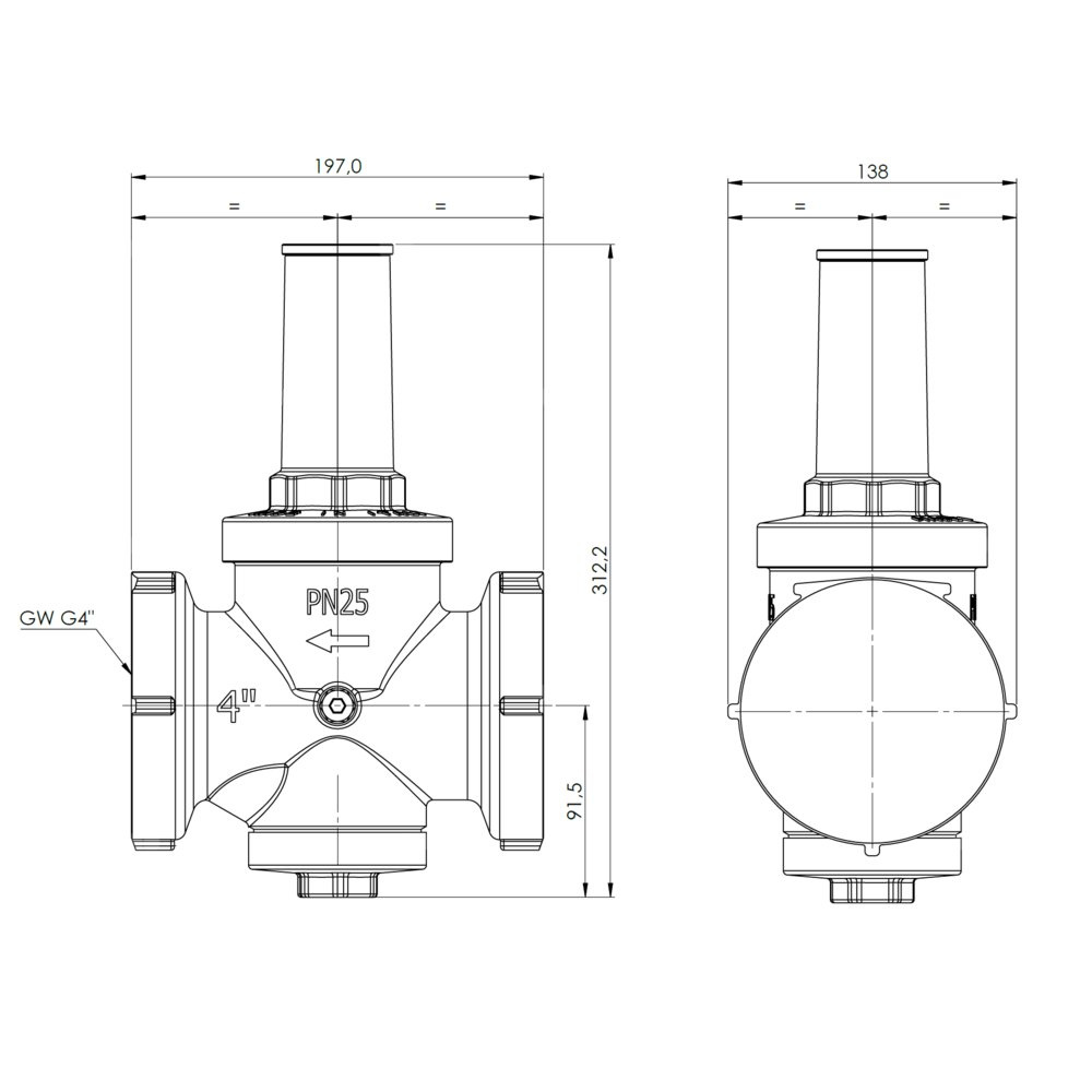 Obniża i stabilizuje ciśnienie wody do ustawionej wartości niezależnie od zmian ciśnienia na wlocie do reduktora.