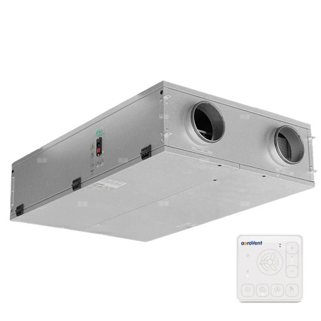 Rekuperator FLAT 550+ płaski, z panelem Wi-Fi, podwieszany lub do montażu na stropie, z by-passem, z nagrzewnicą wstępną i wymiennikiem przeciwprądowym entalpicznym