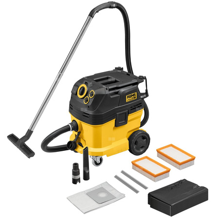 Wysokowydajny, elektryczny odkurzacz na sucho i mokro z automatycznym oczyszczaniem filtra. Dla użytku w rzemiośle i przemyśle. Odkurzanie pyłu, brudu i cieczy. Idealny do odpylania podczas bruzdowania, cięcia, wiercenia, wiercenia rdzeniowego i szlifowania. Certyfikowany jako odkurzacz i odpylacz do zbierania pyłów groźnych dla zdrowia. Idealny do zasysania szlamu powstającego przy wierceniu rdzeniowym.