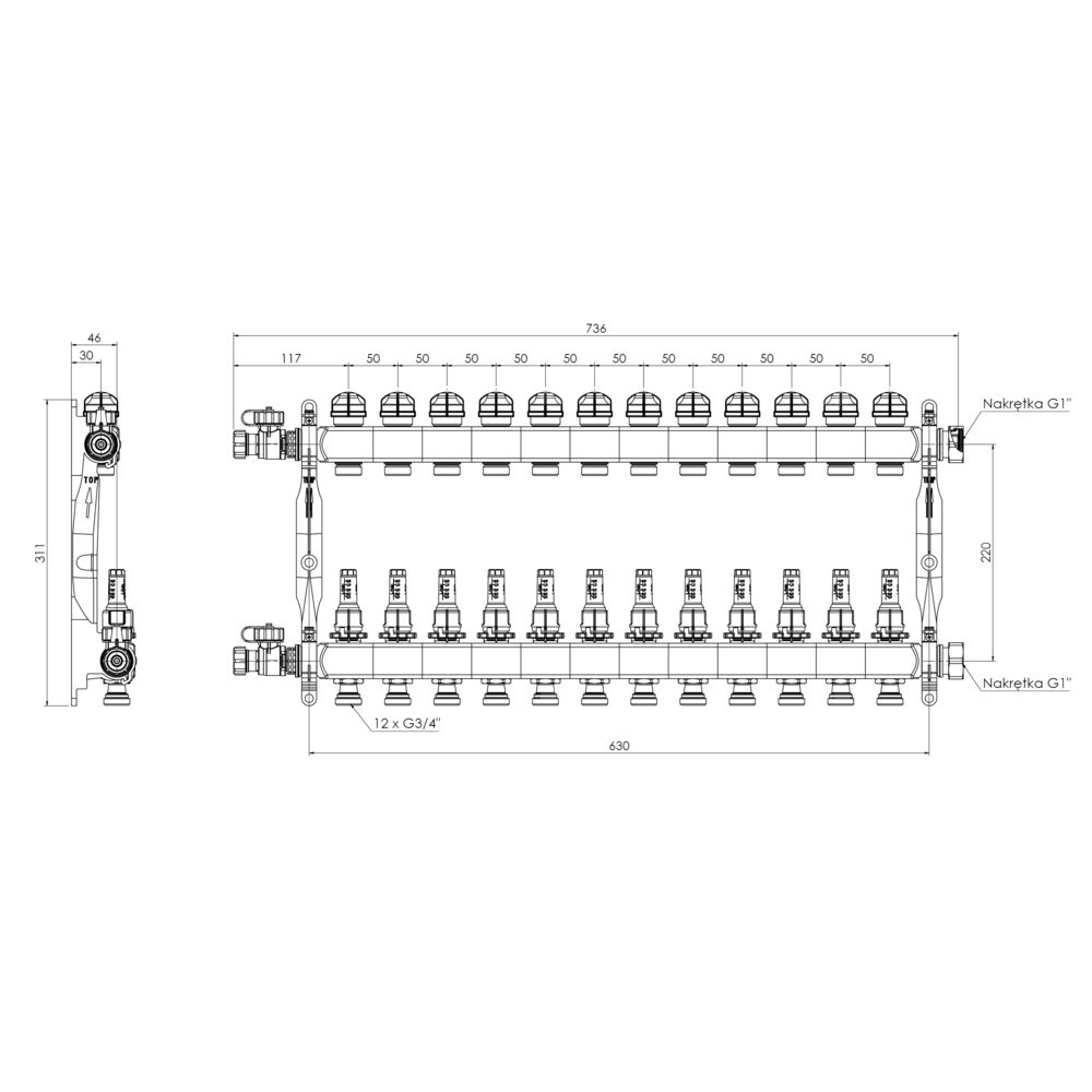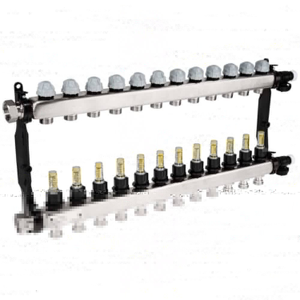 Rozdzielacz do ogrzewania podłogowego AFRISO ProCalida VA 1C 12-obieg. stal nierdzewna GZ 1'' x euroconus 3/4''