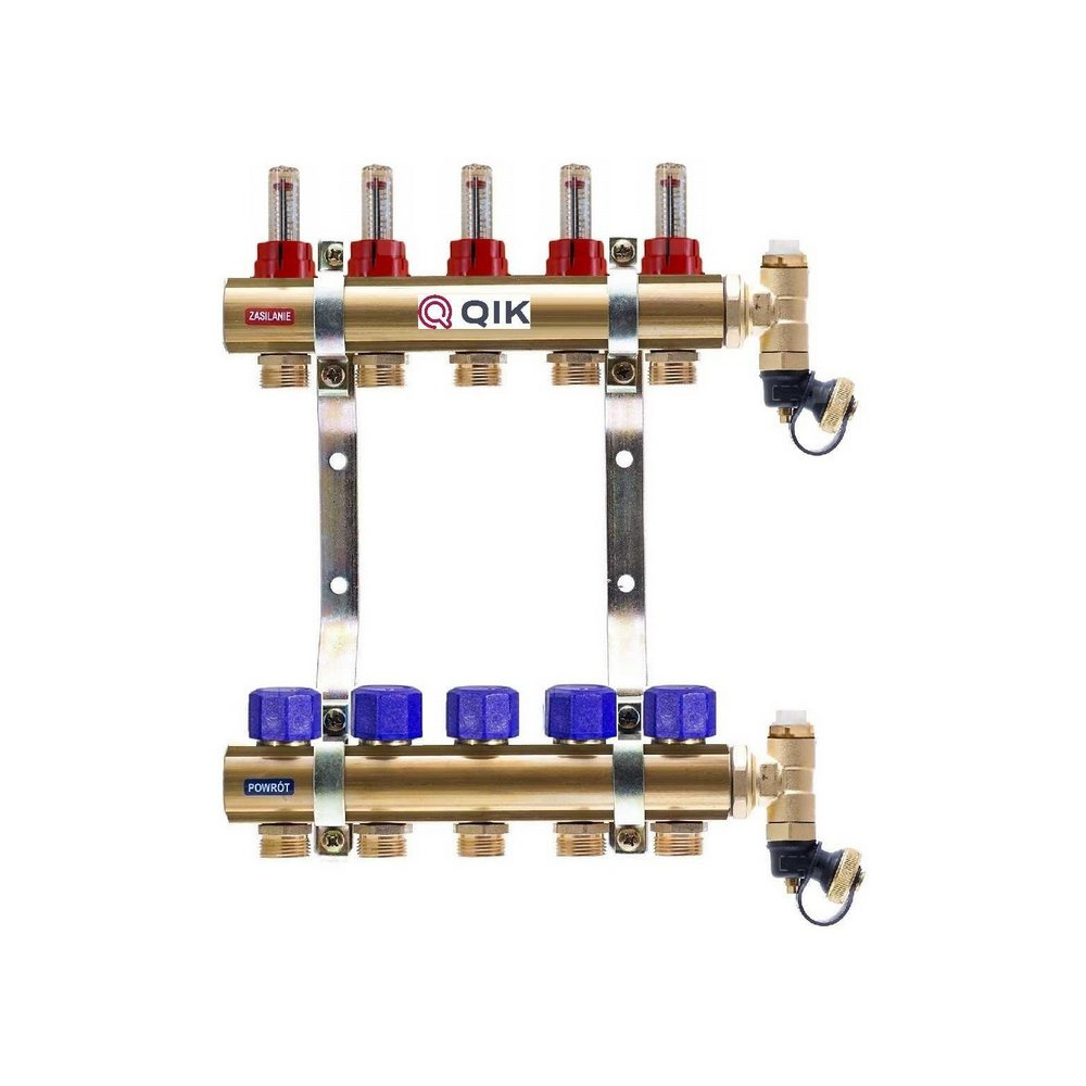 Rozdzielacz do ogrzewania podłogowego QIK BASIC II TN 10-obieg. mosiądz GW 1'' x GZ 3/4'' + przepływomierz
