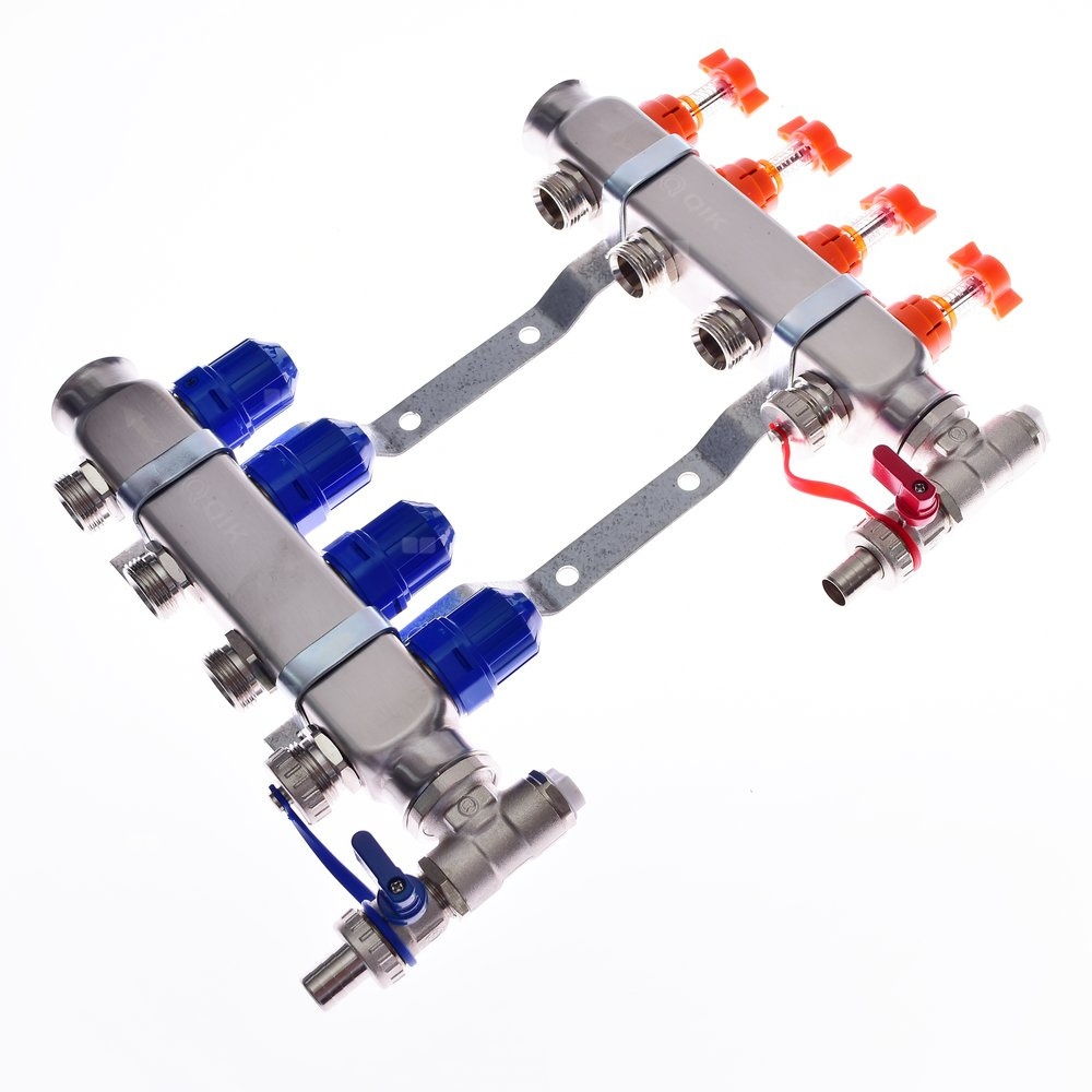 Rozdzielacz do ogrzewania podłogowego QIK Optimo BASIC III - RNZT-2-50 11-obieg. inox GW 1'' x GZ 3/4'' + przepływomierz