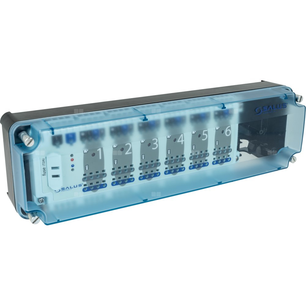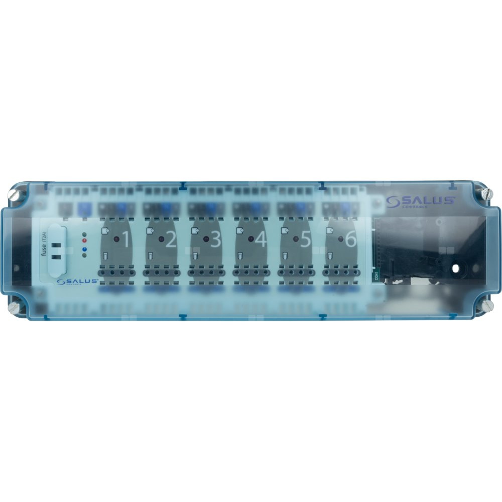 SALUS StartPack Premium - zestaw przewodowego sterowania ogrzewaniem podłogowym z zarządzaniem przez Internet: KL06-M, PL07, UG800, 4 xSQ610