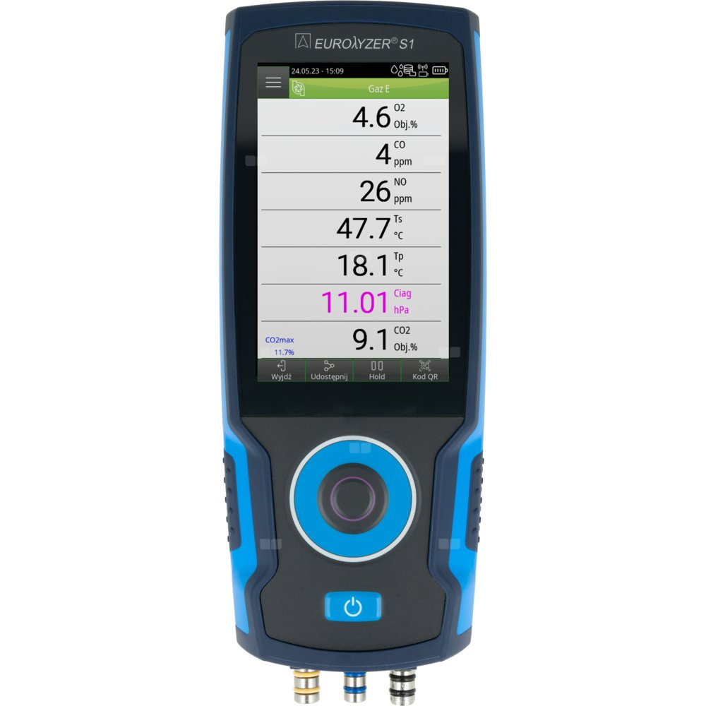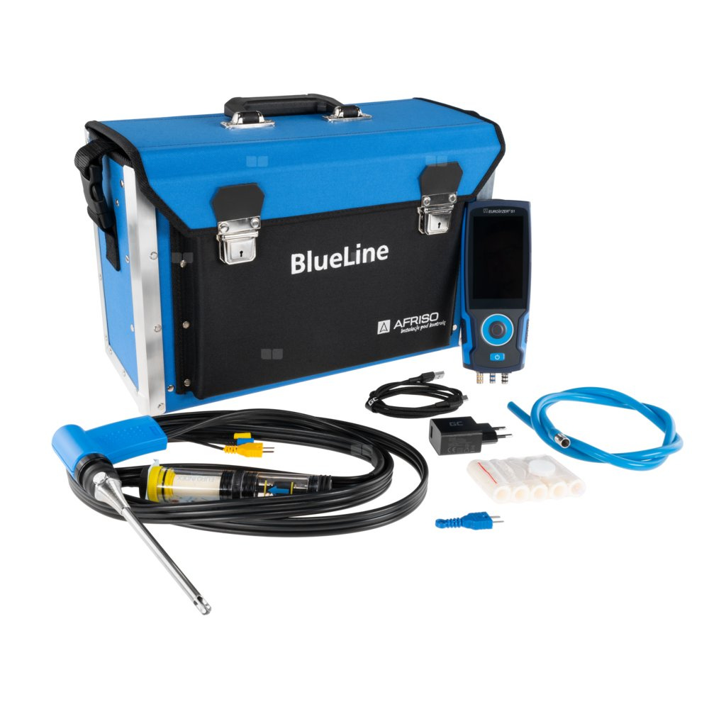 Sensor O2, CO/H2, pomiar ciągu kominowego, pomiar ciśnienia, analizator spalin AFRISO EUROLYZER S1 pro, bez drukarki, z walizką