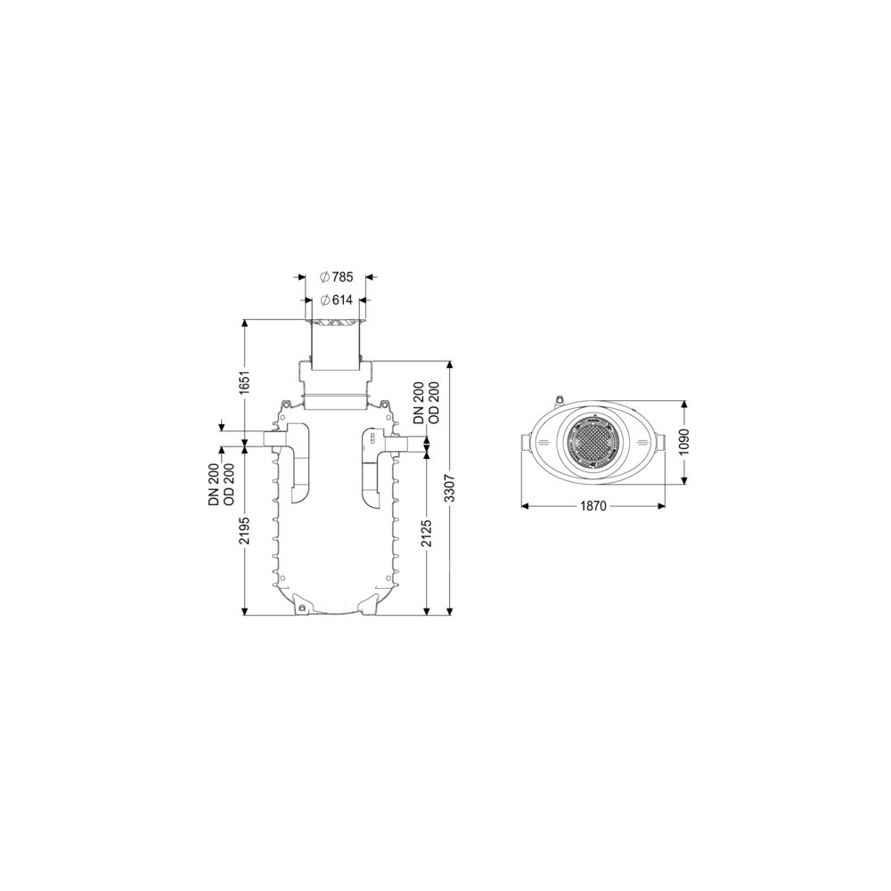 Odstęp między dnem rury dopływowej a dnem zbiornika: 2195 mm