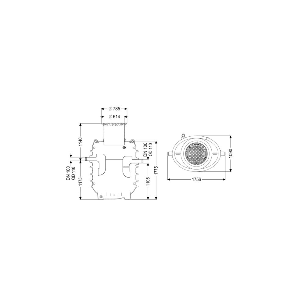 Odstęp między dnem rury dopływowej a dnem zbiornika: 1175 mm
