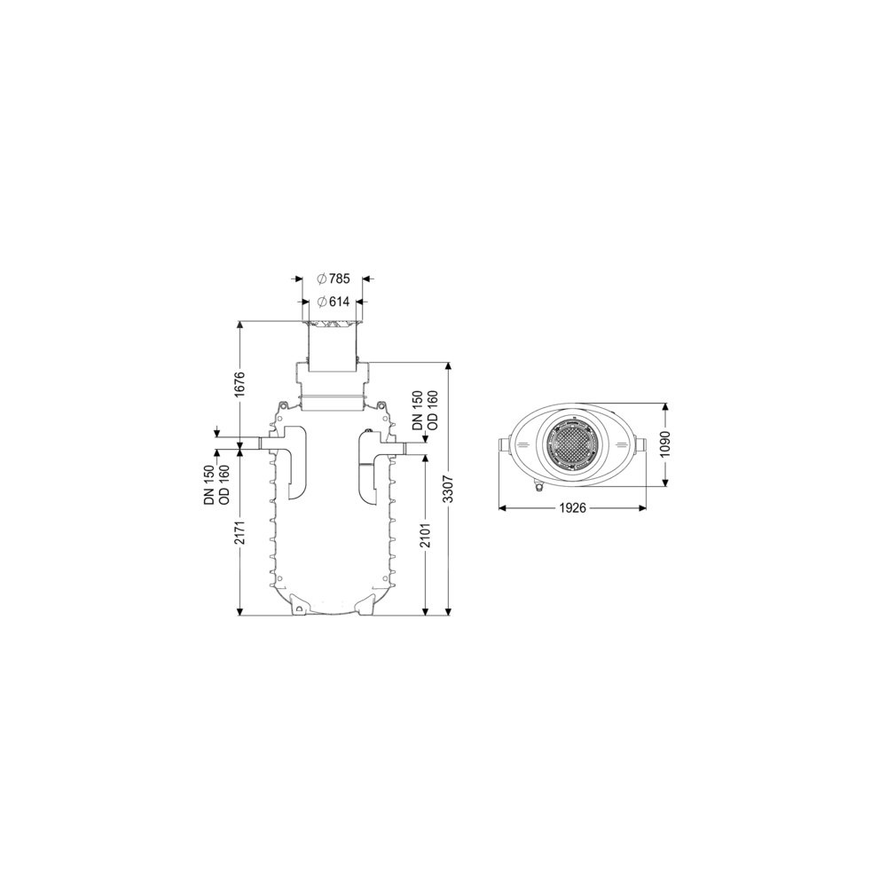 Odstęp między dnem rury dopływowej a dnem zbiornika: 2170 mm