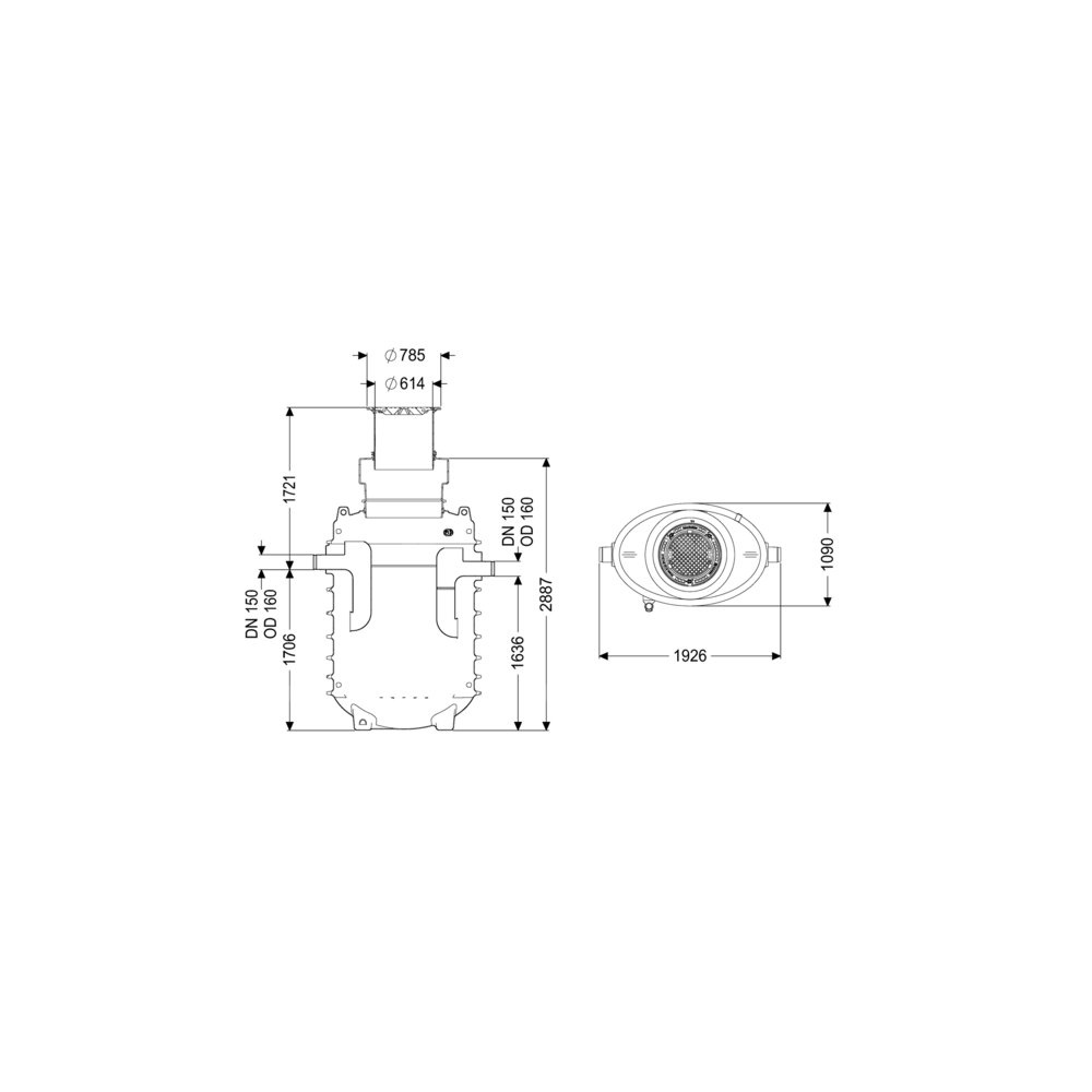 Odstęp między dnem rury dopływowej a dnem zbiornika: 1705 mm