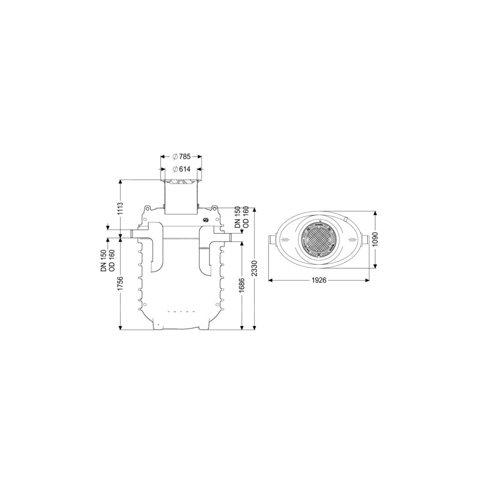 Odstęp między dnem rury dopływowej a dnem zbiornika: 1755 mm