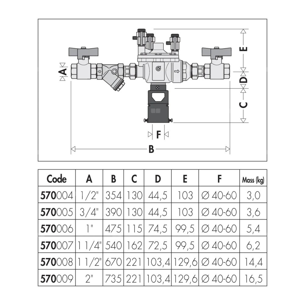 Wstępnie zmontowana grupa, przyłącza z gwintem wewnętrznym, przyłącza gwintowane. Zawiera: -izolator przepływów zwrotnych serii 574; -filtr skośny serii 577; -ręczne zawory odcinające. Przyłącze: G 1/2" (ISO 228-1) GW. Zakres temperatury medium: 0–65 °C. PN (Ciśnienie nominalne): PN 10.