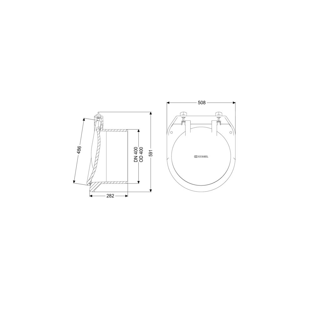 KESSEL Klapa zwrotna, wielkość nominalna (DN) 400, ścieków Ścieki bez fekaliów, wymiar zewnętrzny (DZ) 405 mm, swobodny przewód kanalizacyjny, pojemność 62,38 dm³