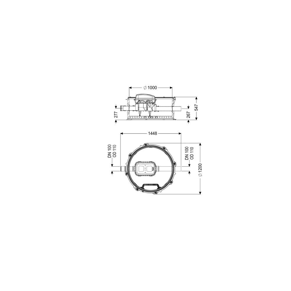 Moduł techniczny studzienki przeciwzalewowej z urządzeniem Controlfix z zamkniętą kinetą przelotową DN100
