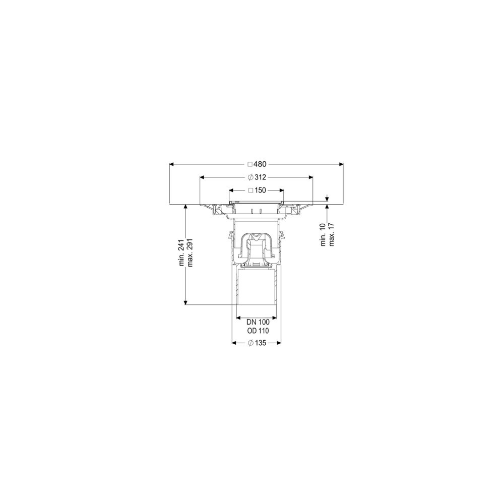 KESSEL Wpust obiektowy Ecoguss, wielkość nominalna (DN) 100, króciec pionowy, typ pokrywy Kratka szczelinowa, syfonem w zestawie, regulowany w trzech wymiarach, maks. wys. posadzki 17 mm, zamknięcie przykręcony