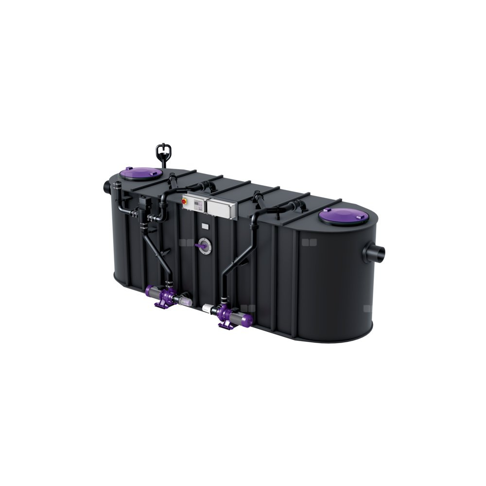 Separator do ścieków zawierających tłuszcze jest przystosowany do swobodnego ustawienia w pomieszczeniach nieprzemarzających, a jego zbiornik nie zawiera metalowych elementów. Zbiornik wykonany z trwałego tworzywa sztucznego (PE) jest wyposażony w zintegrowany osadnik i ma dno z ukośnymi elementami, które umożliwia szybkie i całkowite usuwanie zawartości. Dwie szczelne zapachowo pokrywy z zamknięciami szybkomocującymi umożliwiają łatwy dostęp w celu wyczyszczenia lub konserwacji. Innowacyjny system „Schredder-Mix“ ze zintegrowanym rozdrabniaczem dokonuje homogenizacji i przetłoczenia zawartości zbiornika. Czyszczenie i usuwanie zawartości zbiornika bez obecności przykrych zapachów następuje przy tym poprzez znajdującą się na zewnątrz pompę z zaworem 2-drożnym i siłownikiem, którą można oddzielić od zbiornika urządzenia przy pomocy zasuwy odcinającej. Sterowanie w pełni automatycznym przebiegiem programu następuje przy pomocy przyjaznego w użyciu urządzenia sterowniczego z kilkuwierszowym wyświetlaczem, które przy pomocy kontaktu bezpotencjałowego można włączyć w system zarządzania budynkiem(BMS). Przy pomocy opcjonalnie dostępnego zdalnego sterowania można uruchomić czyszczenie i opróżnianie z oddalonego miejsca. Dzięki zindywidualizowanemu programowi czyszczenia z funkcją szybkiego wyboru można dopasować czyszczenie do warunków panujących na miejscu. Przy pomocy w pełni zautomatyzowanego płukania instalacji wody pitnej można zagwarantować spełnienie wymogów rozporządzenia w sprawie jakości wody przeznaczonej do spożycia przez ludzi. Gwarancja na tworzywo PE wynosi 20 lat.