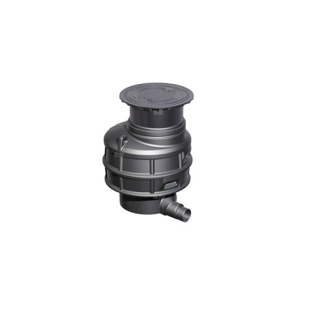 Studzienka do pobierania próbek LW 1000 do separatorów, do zabudowy w ziemi, ze stopniami złazowymi, odporna na wodę i agresywne ścieki. Nasada z tworzywa sztucznego do bezstopniowej regulacji wysokości i poziomu, pokrywa z żeliwa szarego wg EN 124, przykręcona, z kluczem do wyjmowania. Kierunek przepływu: prosto Dla klasy obciążenia D należy w miejscu instalacji zamontować płytę odciążającą. Schematy zbrojenia są dostępne w firmie KESSEL.