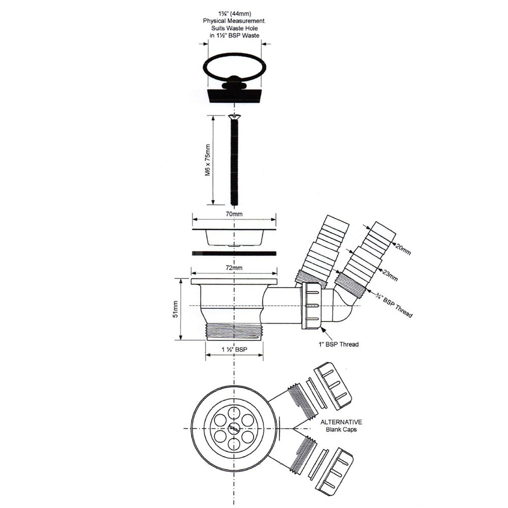 Rozmiar: 1.1/2″x70 mm – kompatybilny z większością zlewozmywaków.