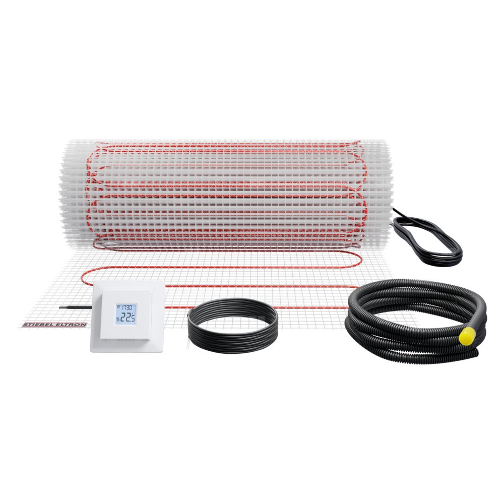 • Ze względu na niewielką grubość montażową matę grzewczą można ułożyć bezpośrednio w kleju do płytek pod okładziną ceramiczną.Pod dywanami i innymi wykładzinami podłogowymi umieszczana jest w warstwie wyrównawczej.W połączeniu z wodnym ogrzewaniem podłogowym można w ten sposób również poza sezonem grzewczym zapewnić sobie komfort ciepłej podłogi.Przewody grzewcze przyszyte są w całości do samonośnej maty, dzięki czemu można je łatwo i szybko ułożyć na podłodze. Montaż