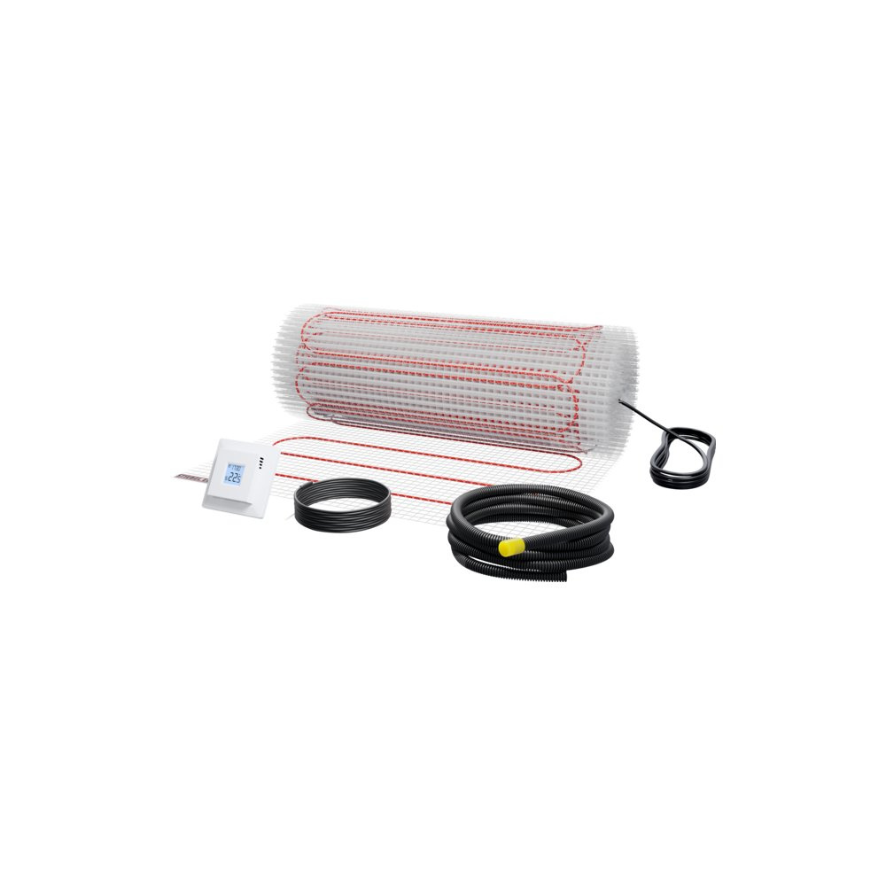 • Ze względu na niewielką grubość montażową matę grzewczą można ułożyć bezpośrednio w kleju do płytek pod okładziną ceramiczną.Pod dywanami i innymi wykładzinami podłogowymi umieszczana jest w warstwie wyrównawczej.W połączeniu z wodnym ogrzewaniem podłogowym można w ten sposób również poza sezonem grzewczym zapewnić sobie komfort ciepłej podłogi.Przewody grzewcze przyszyte są w całości do samonośnej maty, dzięki czemu można je łatwo i szybko ułożyć na podłodze. Montaż