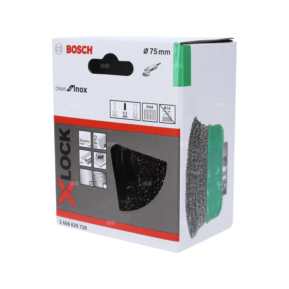 Szczotka garnkowa druciana z systemem X-LOCK, drut falisty 75, stal nierdzewna 75 mm, 0,3 mm, X-LOCK