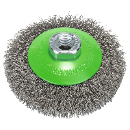 Optymalne narzędzie do obróbki miejsc trudno dostępnych (ze względu na stożkowy kształt szczotki).