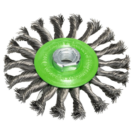 Do ciężkich prac związanych z czyszczeniem z dużą prędkością obwodową mniejszych powierzchni metalowych, rowków lub krawędzi ze stali szlachetnej, aluminium lub metali kolorowych, jak np. usuwanie silnej korozji, usuwanie lakieru, żużlu, zadziorów i zgorzeliny.