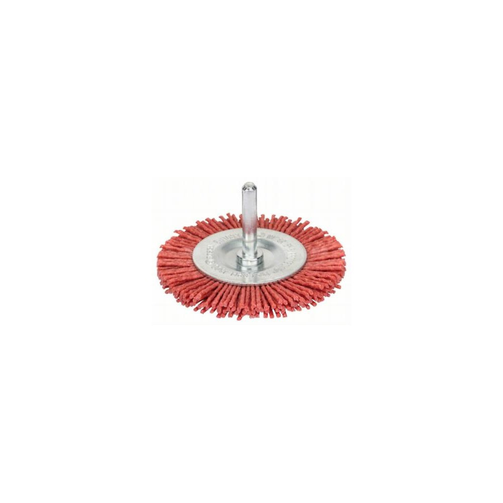| Tekst produktu, osprzęt szary | Szczotka tarczowa – drut nylonowy z korundowym mat. ściernym K80 Do usuwania lakieru, usuwania rdzy, wygładzania, matowania i czyszczenia drewna, metalu i PCW na małych powierzchniach, w rowkach i na krawędziach, do strukturowania drewna oraz usuwania kolorowych nalotów na spawach ze stali szlachetnej. Dopasowuje się idealnie do obrysu obrabianego przedmiotu, nie zmieniając znacząco jego powierzchni. Pracuje ze stałą wydajnością ścierania, ponieważ stale uwalniają się ziarna szlifierskie. |