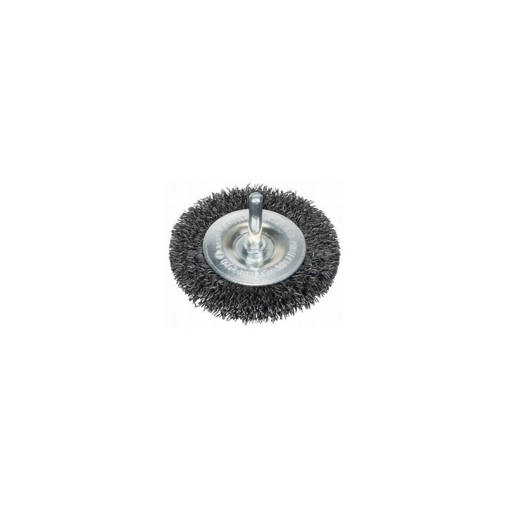 | Tekst produktu, osprzęt szary | Szczotka tarczowa – drut falisty Optymalne narzędzie do usuwania kolorowego nalotu na spawach . Do lekkich i średniociężkich prac związanych z czyszczeniem małych powierzchni metalowych, rowków lub krawędzi, jak np. usuwanie korozji, bruzdkowanie, matowanie i usuwanie lakieru. |