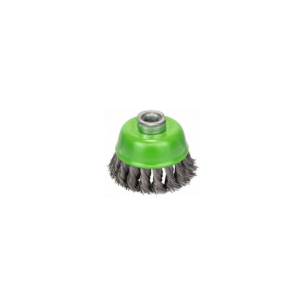| Tekst produktu, osprzęt szary | Szczotka garnkowa – drut pleciony, nierdzewny Do ciężkich prac związanych z czyszczeniem średnich i dużych powierzchni z metali szlachetnych, aluminium i metali kolorowych, jak np. usuwanie silnej korozji, usuwanie farby lub lakieru. Do wszystkich szlifierek kątowych z gwintem M 14 oraz szlifierki prostej GGS 6 S Professional |
