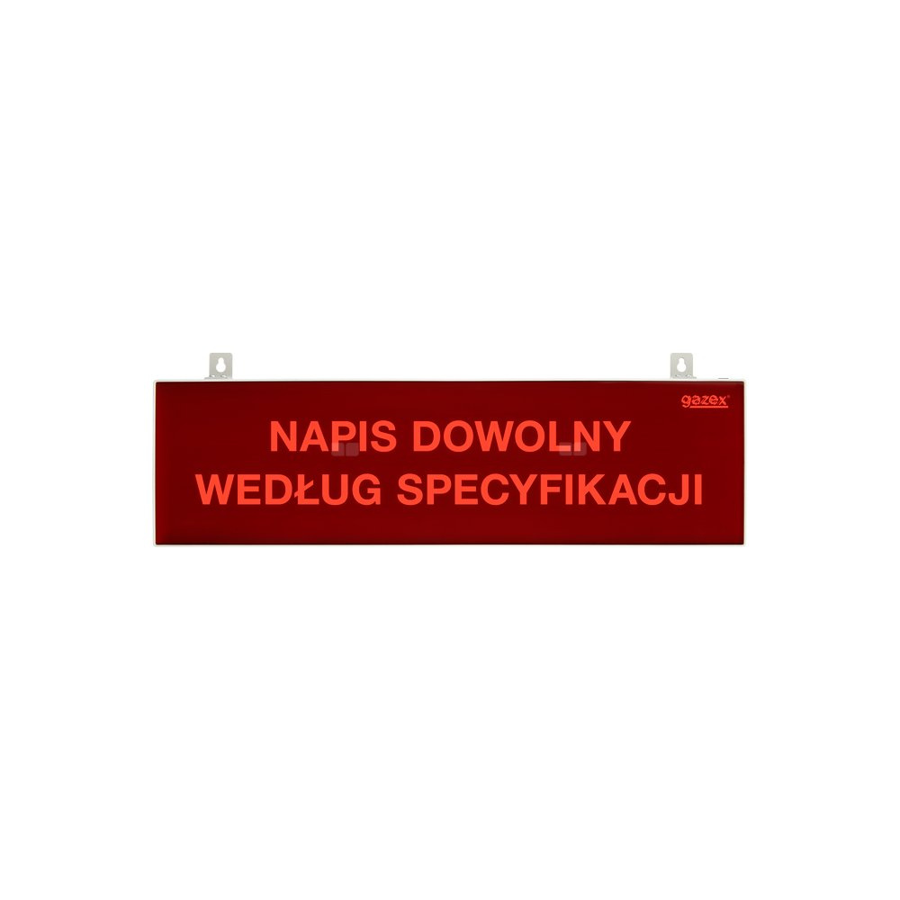 tablica ostrzegawcza, napis na zam., podświetlenie czerwone LED, wbudowana cicha syrenka, zasilanie 230V