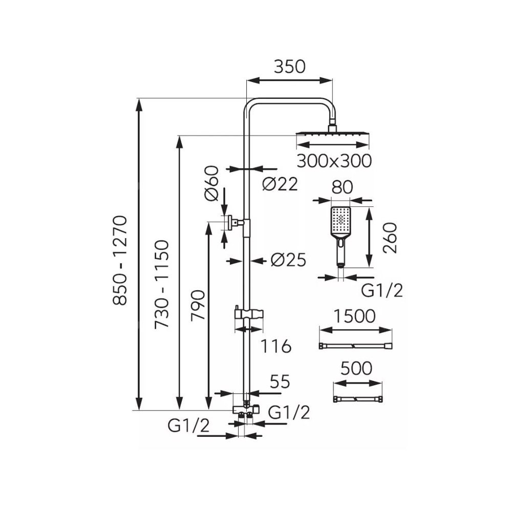 • wąż podłączeniowy 500 mm z nakrętką G1/2 - uniwersalne podłączenie do każdej baterii wannowej i natryskowej