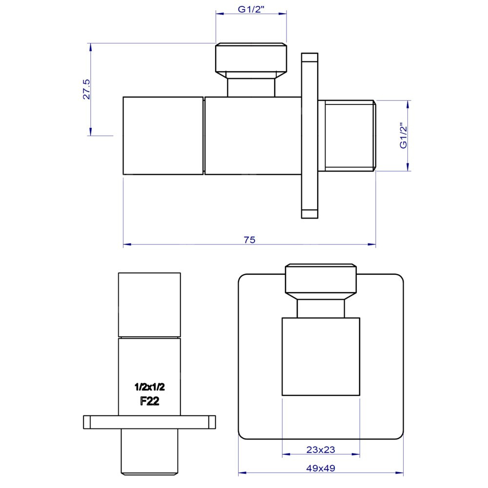 Zawór kątowy w modnym, kwadratowym dizajnie.