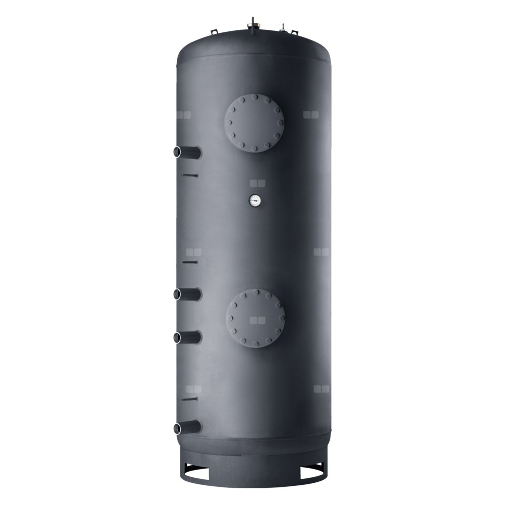 • Wbudowane są dwa wewnętrzne dwururkowe wymienniki ciepła: dolny do podłączenia kolektorów solarnych, a górny do podłączenia pompy ciepła.W przypadku pomp ciepła o większej mocy obydwa wymienniki ciepła można połączyć szeregowo.