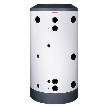 • Zbiornik stalowy z izolacją piankową nakładaną bezpośrednio wyposażony jest w hydrauliczne króćce przyłączeniowe, które umieszczone są z przodu i ułożone nad sobą.Ponadto dostępne są króćce przyłączeniowe do wyposażenia w elektryczne grzałki wkręcane w razie potrzeby.