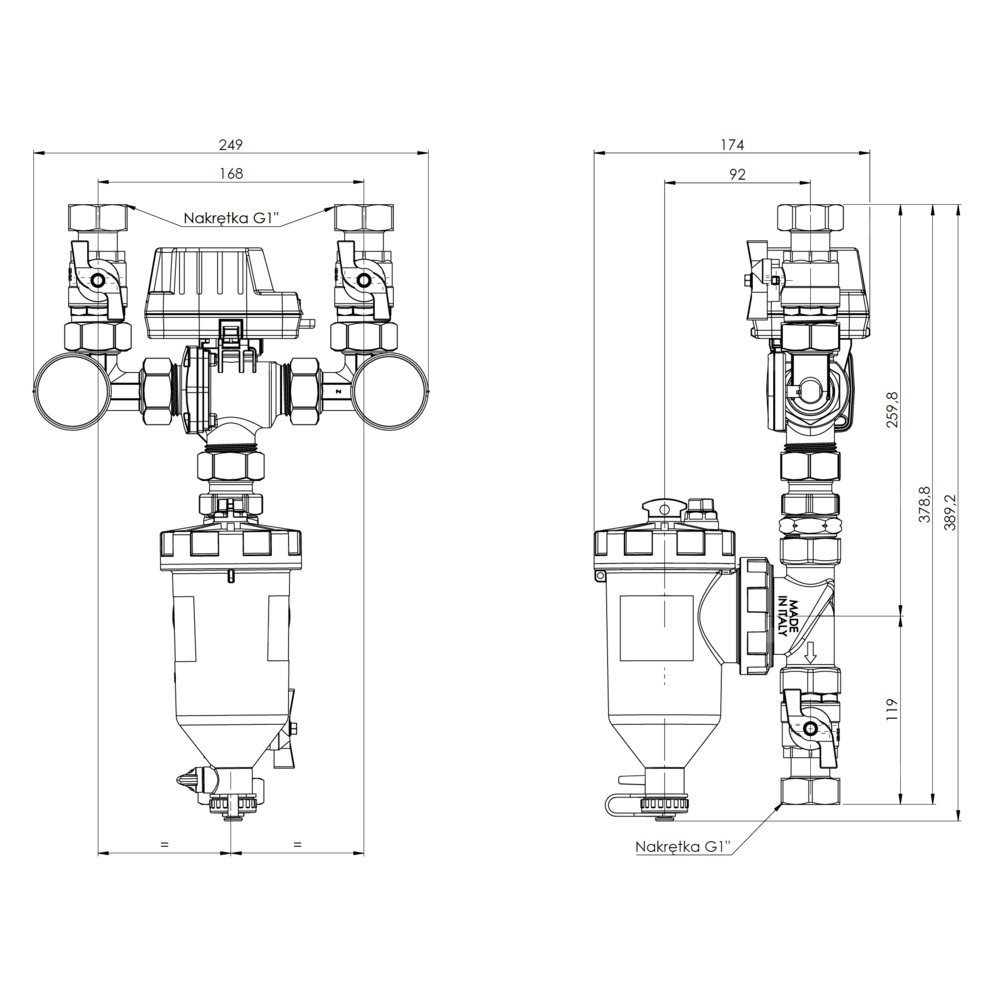 Zespół powrotu do pompy ciepła AMB Lite z zaworem przełączającym USV, separatorem zanieczyszczeń ADS 160, DN20, przyłącza G1"