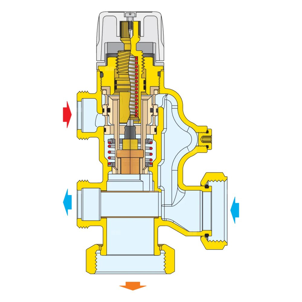Zespół regulacyjny – regulacja stałotemperaturowa. Wstępnie zmontowany w skrzynce inspekcyjnej. 7 wyjść