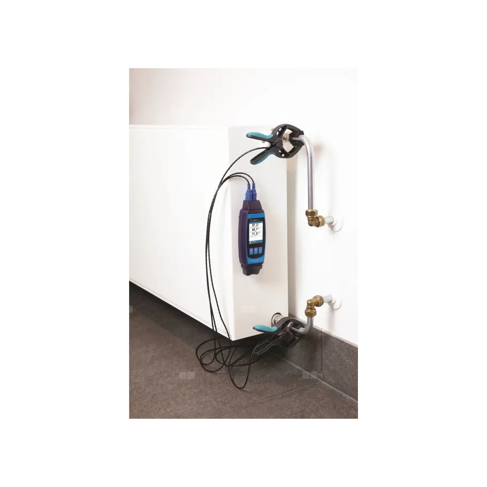 Zestaw umożliwia określanie temperatury na zasilaniu i powrocie pompy ciepła za pomocą dwóch szczypcowych czujników temperatury.Głowica CAPBs sens TK11 pozwala również na podłączenie dowolnych dwóch czujników temperatury typu K (NiCr-NI)