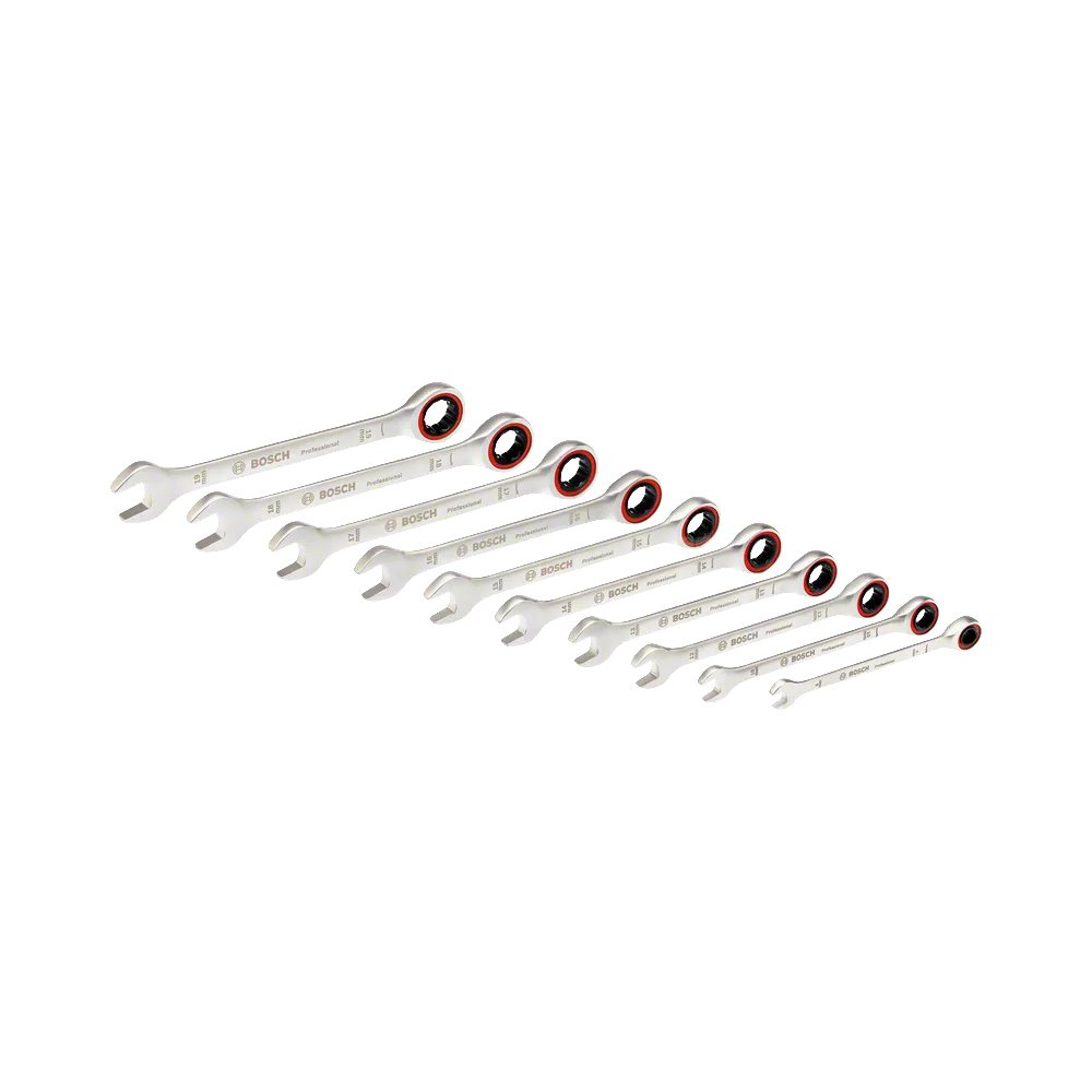Każdy klucz stanowi kombinację klucza płaskiego widełkowego z kluczem oczkowym z grzechotką