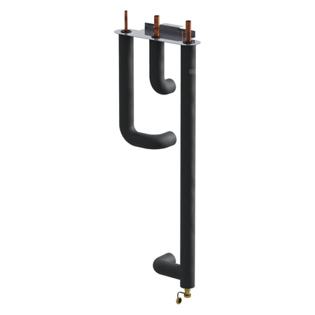 Za pomocą zespołu rurowego z izolacją skierowane do góry przyłącza po stronie wody użytkowej wieży hydrauliczne przekładane są na tył urządzenia.Stamtąd następuje podłączenie hydrauliczne do miedzianych króćców przyłączeniowych.