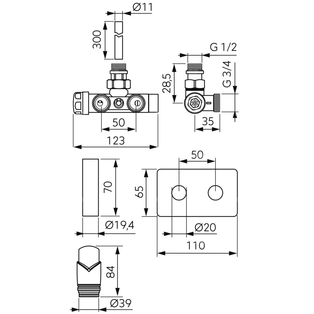 Zestaw zaworu termostatycznego zespolonego kątowego z rurką zanurzeniową, z nastawą wstępną, antracyt