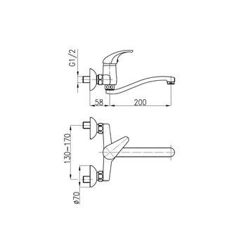 ( ilość produktów: 2 )Bateria zlewozmywakowa ścienna KFA Armatura BARYT, kolor chrom, mosiądz