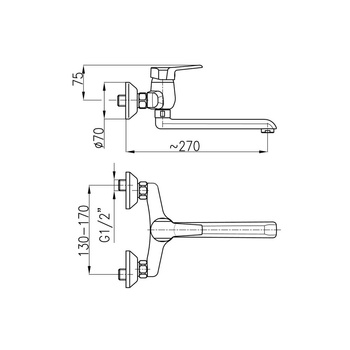 ( ilość produktów: 2 )Bateria zlewozmywakowa ścienna KFA Armatura BERYL, kolor chrom, mosiądz
