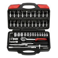 ( ilość produktów: 1 )Zestaw 46 szt.: bity wkrętakowe – 21 sztuk, nasadki kluczowe – 13 sztuk, klucze imbusowe - 4 sztuki, przedłużki – 3 sztuki (w tym jedna elastyczna), adaptery – 2 sztuki (w tym jeden przegubowy), grzechotka – 1 sztuka, rękojeści – 2 sztuki